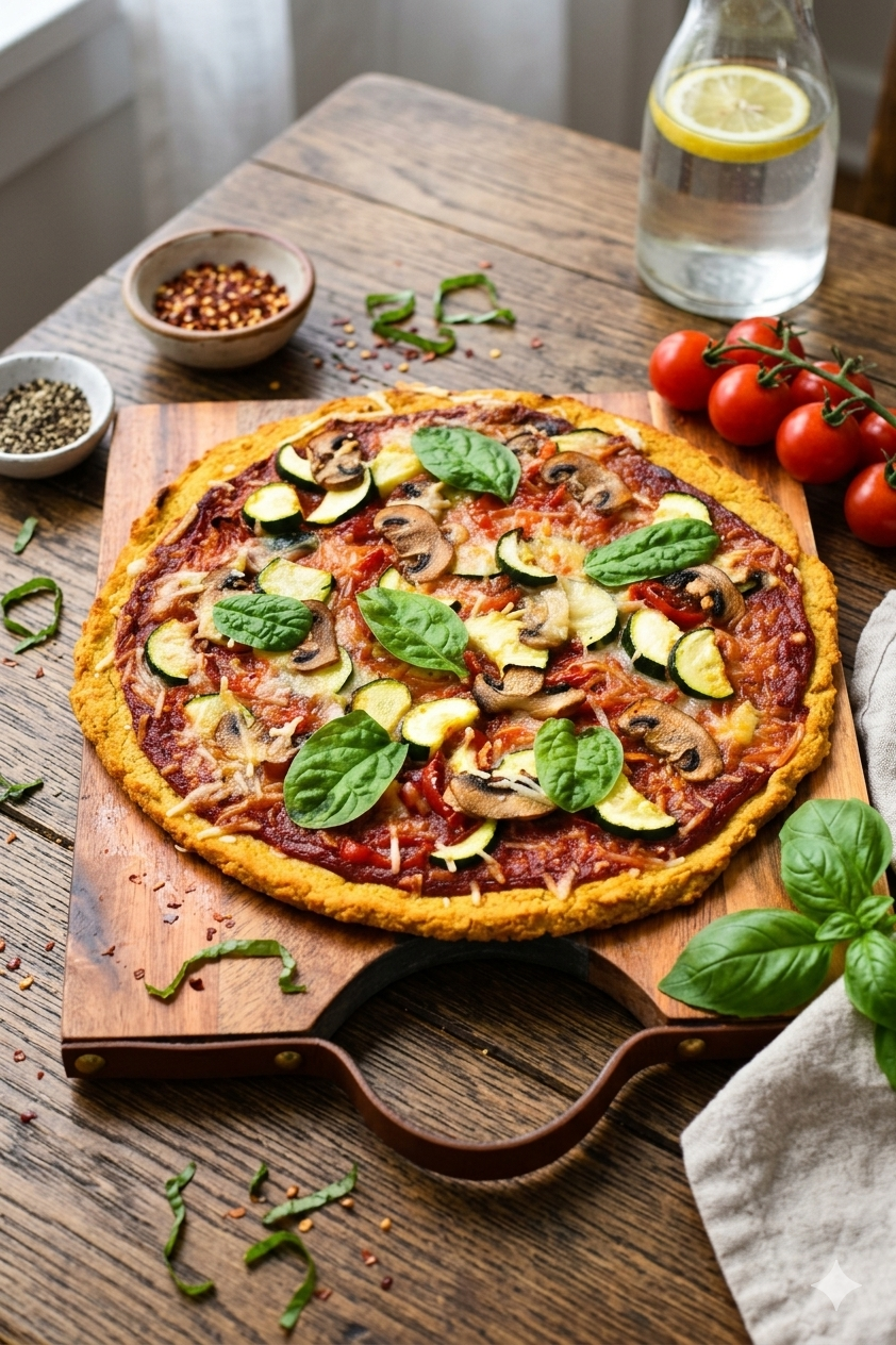 This canned Chickpea Pizza Crust is a thin crispy gluten-free pizza crust made with just 4 simple ingredients, and packed with 30 grams of protein per base. It’s a